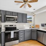 Inside, you’ll find fresh paint, updated fixtures, many brand-new windows, and brand-new stainless steel appliances—the range and microwave have never been used! The eat-in kitchen opens to a bright, welcoming living room with large windows and a cozy gas fireplace. Full-sized washer and dryer included.